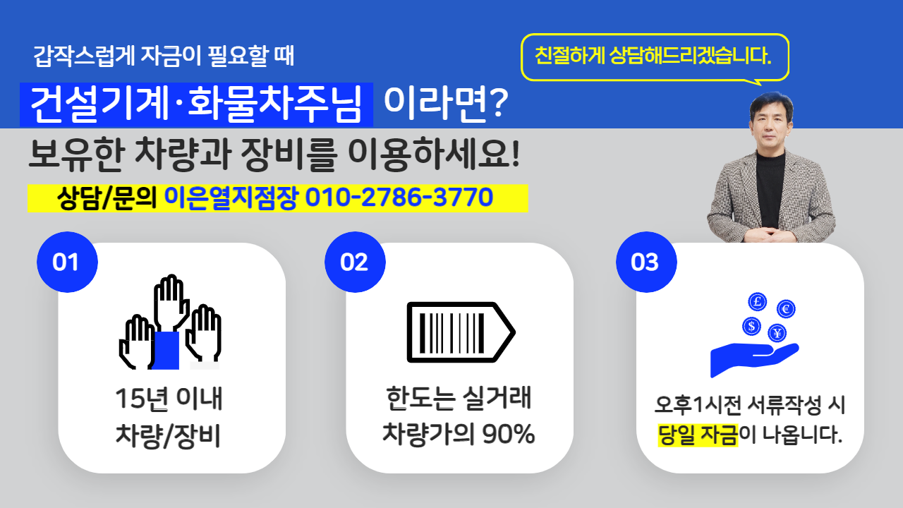 건설기계·화물차 금융 관련 궁금하신 점이 있다면 언제 어디서든 문의주세요!